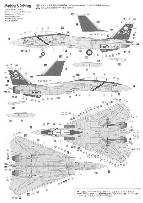 1/48 F-14 A Tomcat US Navy Carrier - Borne Fighter Kit by Hasegawa Japan HAS-07246 (PT46)